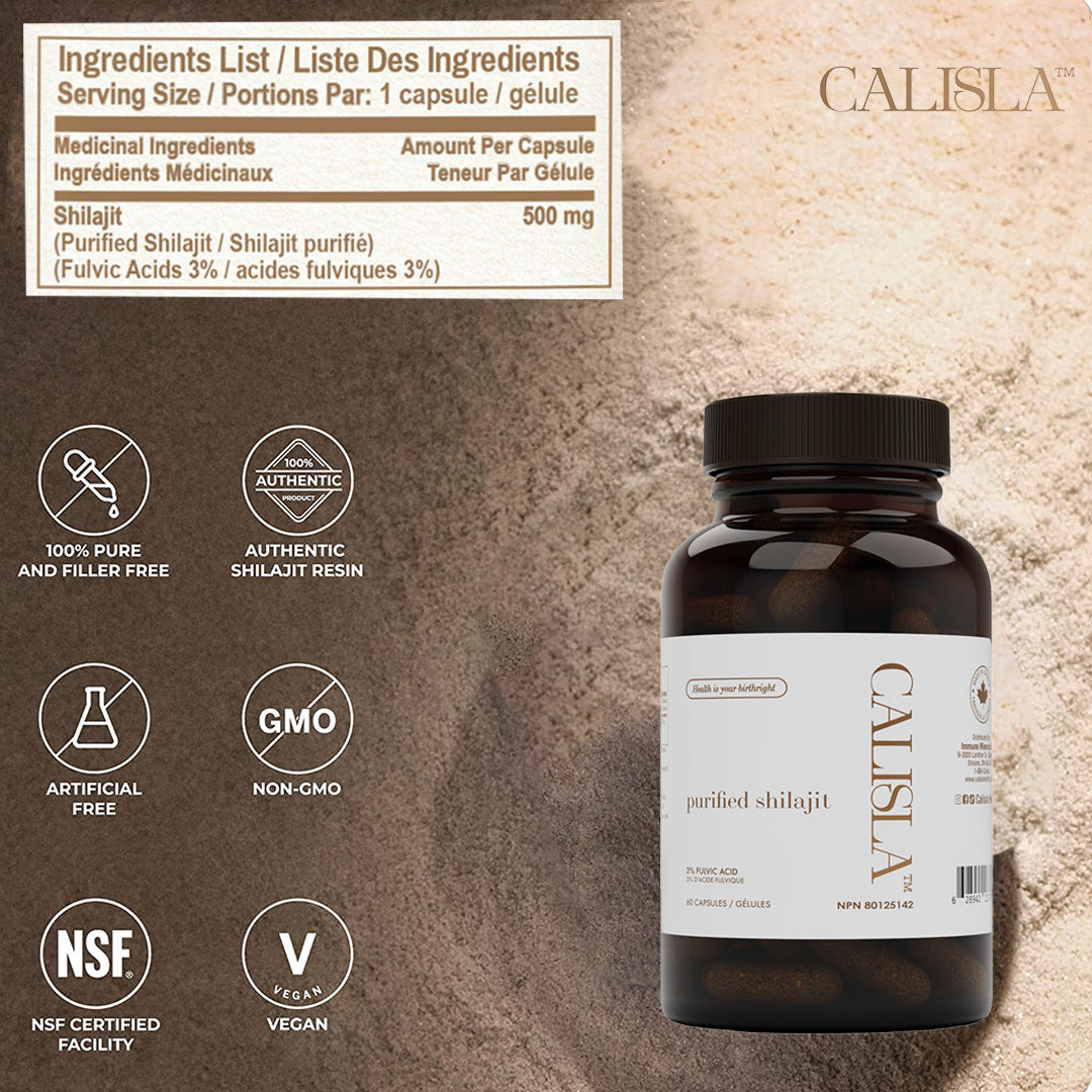 Each CALISLA™ Shilajit Capsule is rigorously tested by third-party labs to confirm its purity and high potency, containing 58% fulvic acid. For best results, we recommend daily usage as directed.